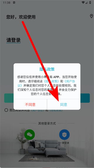 1、打开小鹰看看,在隐私政策弹窗中点击同意。