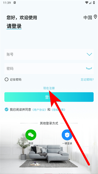 2、在登录页面,点击现在注册,进入注册账号页面。