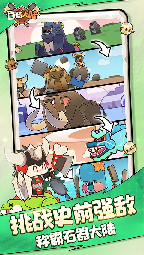 石器大陆这个挂机游戏挺有意思,画面是远古时代的卡通风格。你扮演个原始人养小鳄鱼,喂它吃东西就能拿到各种装备。拿着这些装备去打野兽特别省心,就算关掉游戏角色也会自己打怪。后面还能学到各种厉害技能,连大恐龙都能轻松搞定。玩起来一点都不费劲,特别适合想放松的玩家。