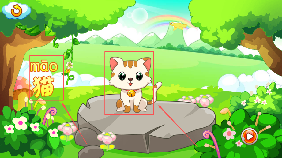 1、在动物农场环节,小朋友可以点击各种小动物,听听它们的叫声并学习它们的名字和特点。
