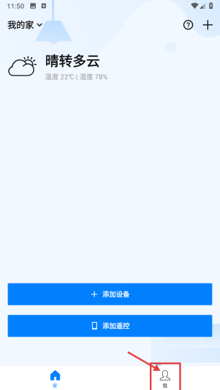 1、打开智能家居类应用,点击底部我选项,进入个人中心页面。