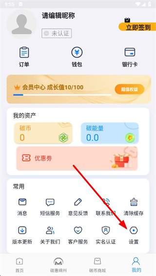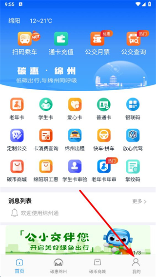1、在绵州通app首页点击我的选项,进入个人页面。