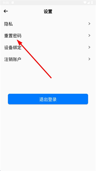 3、在设置页面点击重置密码选项,进入重置密码页面。