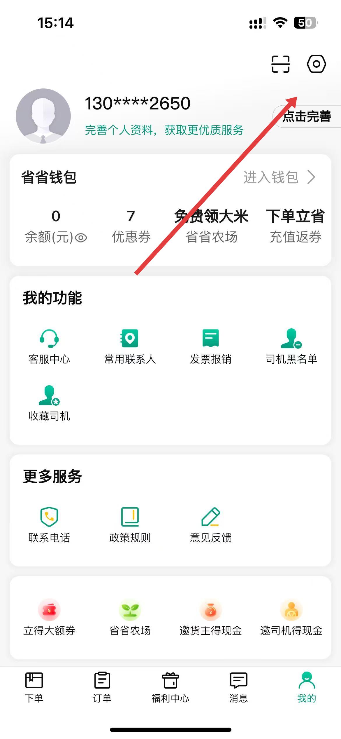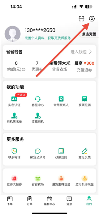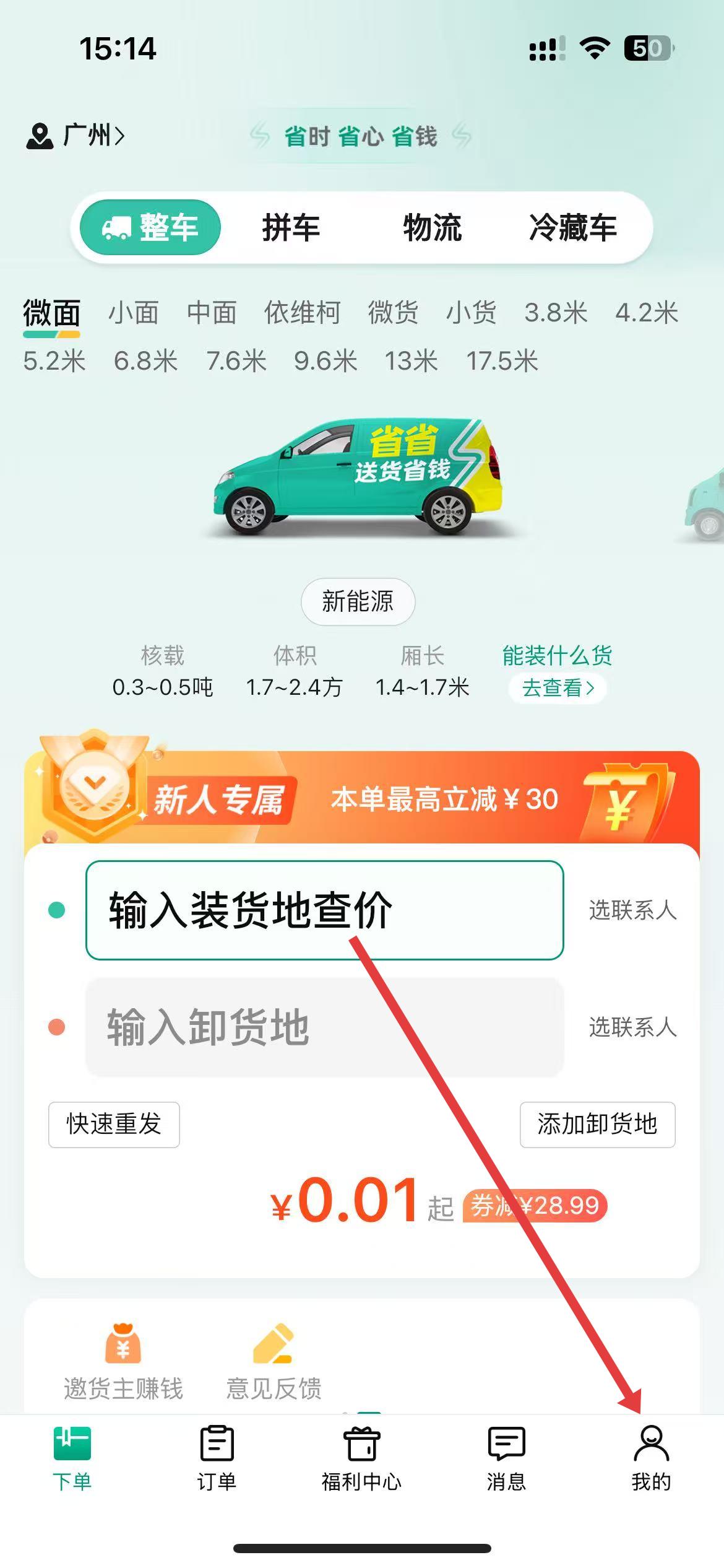 1、打开省省回头车app,在主界面点击右下角我的,进入个人相关界面。