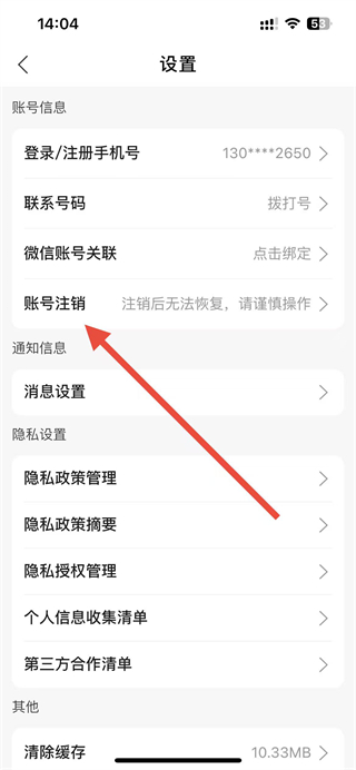 3、在设置页面的账号信息板块中,找到账号注销选项并点击。