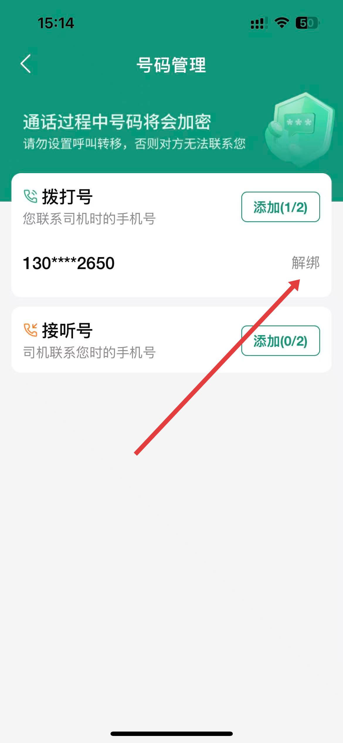 4、在号码管理界面中,找到需要解绑的号码,点击右侧的解绑。