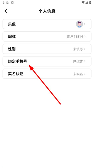 2、在个人信息页面,找到绑定手机号选项并点击。