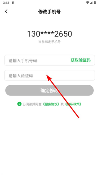 3、在页面输入新手机号,获取验证码,点击确定修改按钮,完成手机号码修改。