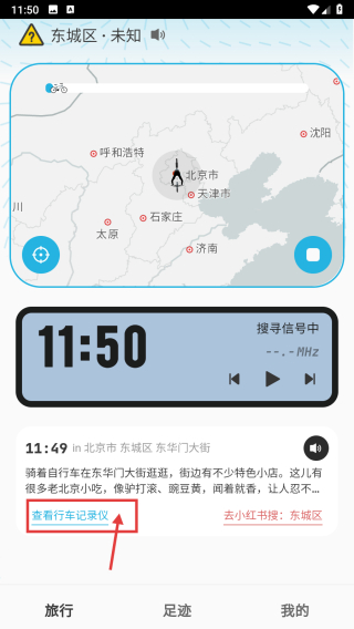 1、打开旅行足迹类APP,点击查看行车记录仪选项,进入行车记录仪页面。