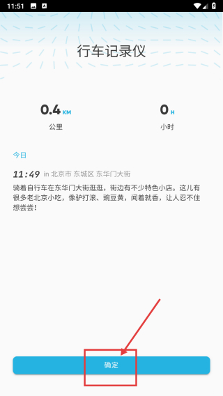 2、在行车记录仪页面,点击确定按钮,完成行车记录确认。