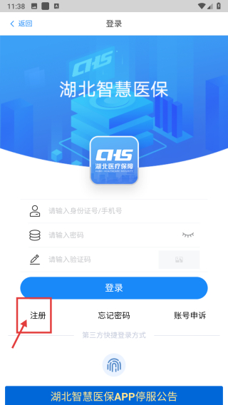 3、在登录页面,点击注册按钮,进入注册信息填写页面。