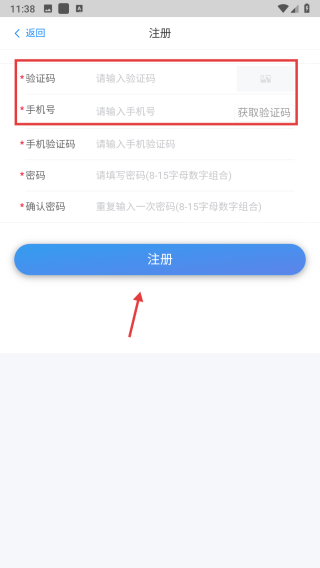 4、在注册页面,填写验证码、手机号、手机验证码及密码,点击注册按钮,完成账号注册操作。