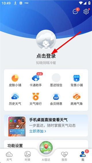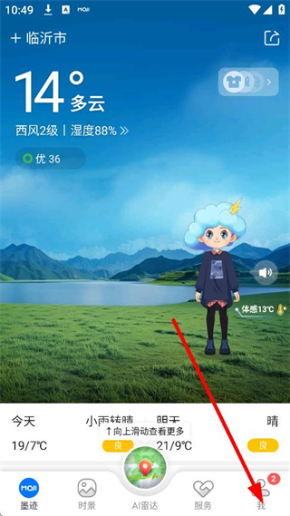 1、在墨迹天气的页面,点击底部的我,进入个人页面。