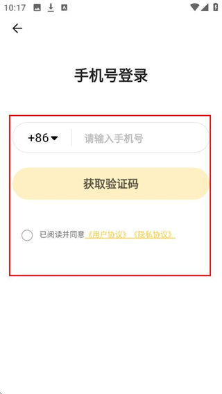 3、在手机号登录页面,输入手机号并获取验证码后,进行下一步操作。