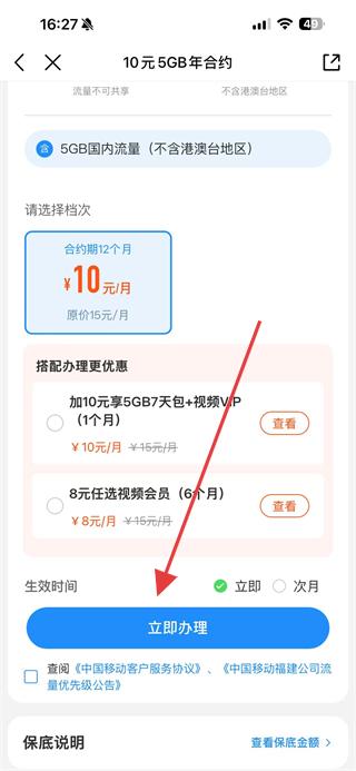 3、在套餐详情页点击立即办理,弹出业务受理信息框。