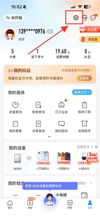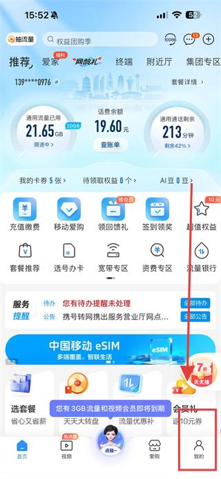 1、打开中国移动北京APP,点击右下角我的,进入个人页面。