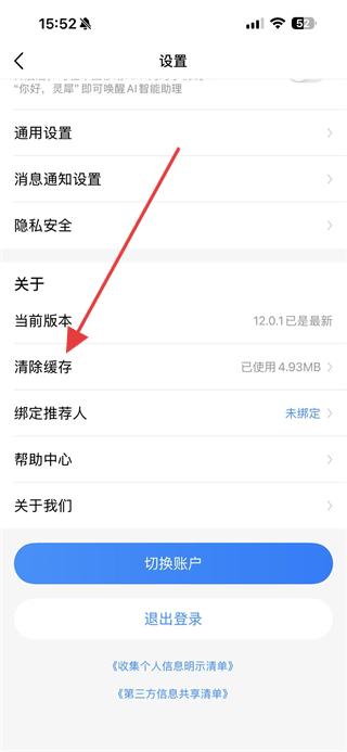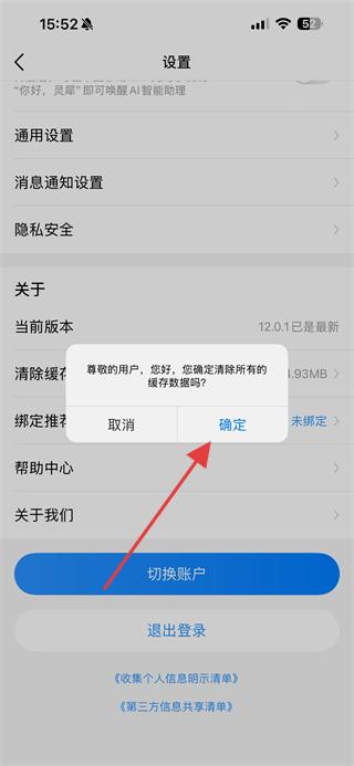 3、在设置界面中,点击清除缓存选项,弹出确认框。