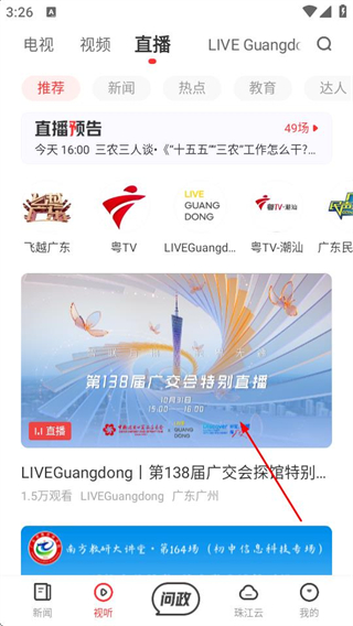 3、在直播分类页面,点击心仪直播,可进入该直播的观看页面。