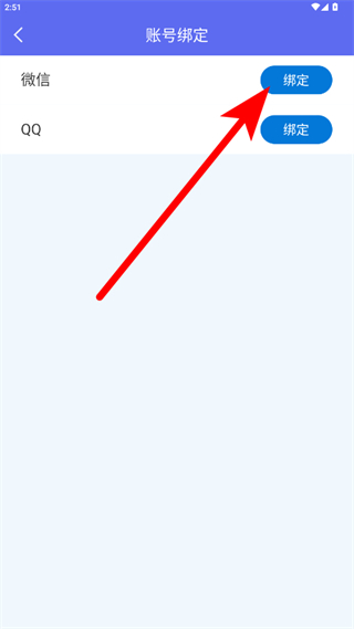 4、在账号绑定页面,点击微信右侧的绑定按钮,完成微信绑定。