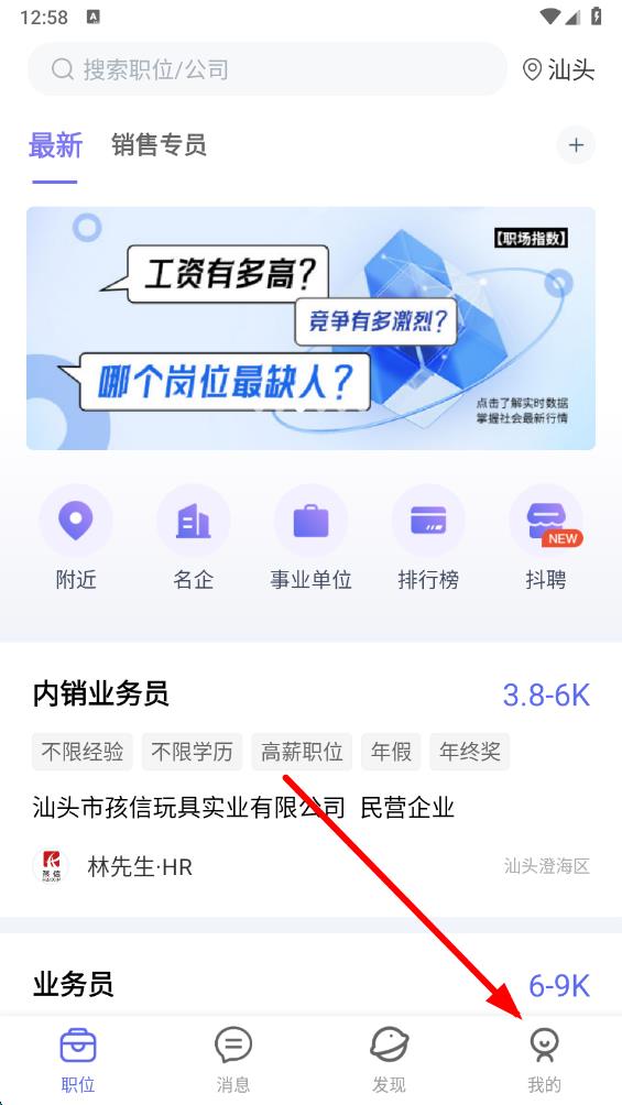 1、打开百城招聘APP,点击右下角我的,进入个人页面。
