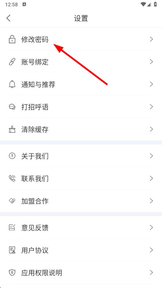 3、在设置界面中,找到并点击修改密码选项,进入修改密码页面。