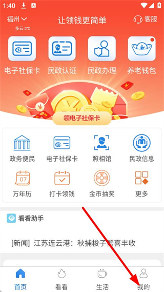 2、在APP首页,点击底部的我的,进入登录选择的页面。