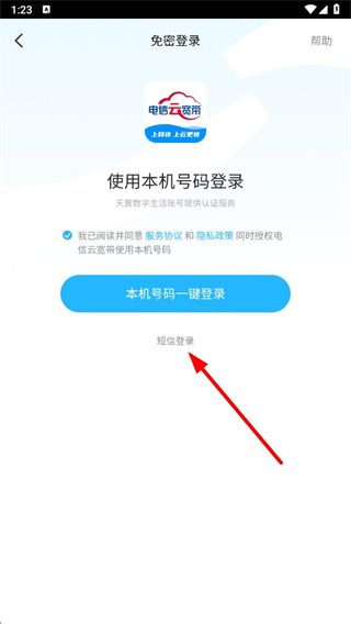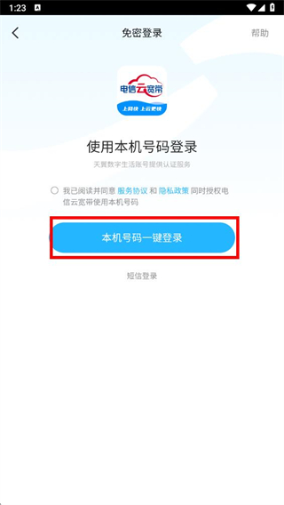 2、进入免密登录页面后,可选择本机号码一键登录。