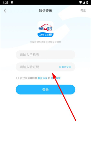 4、输入手机号、获取并输入验证码,勾选协议后点击登录按钮。