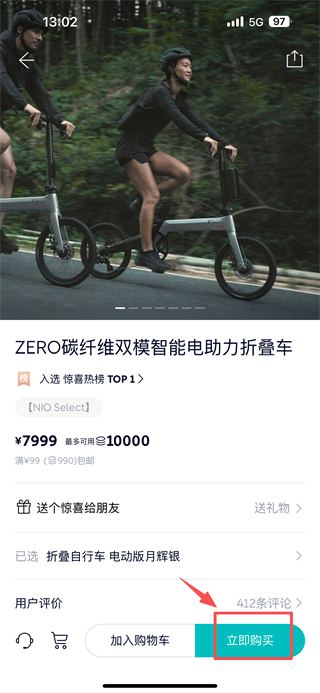 3、在热卖商品列表中,点击ZERO碳纤维双模智能电助力折叠车条目,进入商品详情页。