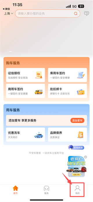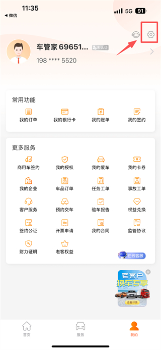 1、打开车管家类APP首页,点击底部我的选项,进入个人中心页面。