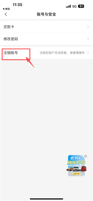 4、在账号与安全页面,点击注销账号选项,完成账号注销操作。