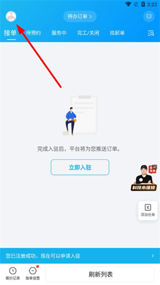 1)点击网站首页“师傅入驻”,进入服务商入驻页面;
