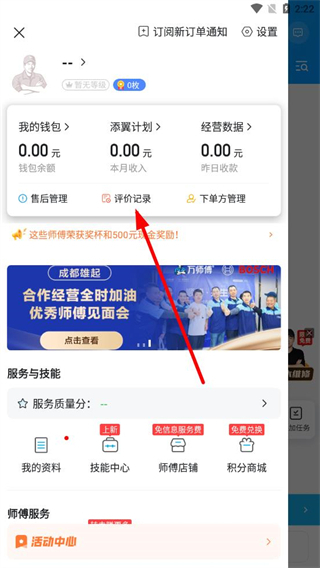 1、打开万师傅APP,点击左上角头像进入个人页面。