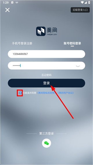 4、勾选已阅读并同意相关协议后,点击登录即可使用密码登录。
