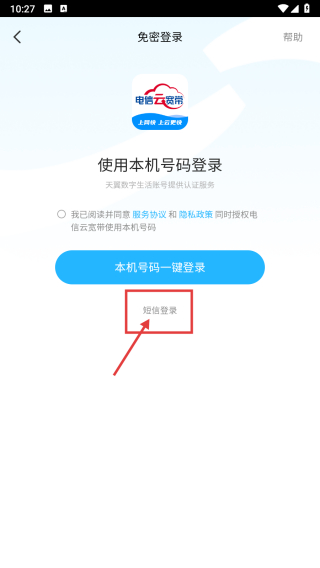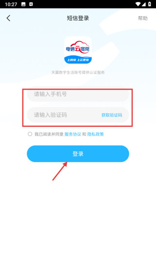 4、在短信登录页面,填写手机号,获取并输入验证码,勾选同意协议后点击登录按钮,完成账号登录操作。