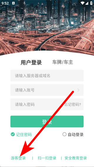 2、在用户登录页面,点击游客登录,进入游客模式页面。