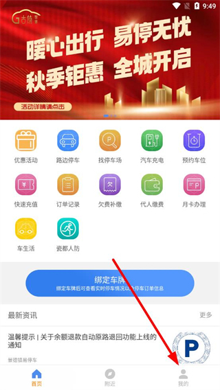 1、打开景德镇易停车APP,点击右下角我的进入个人页面。