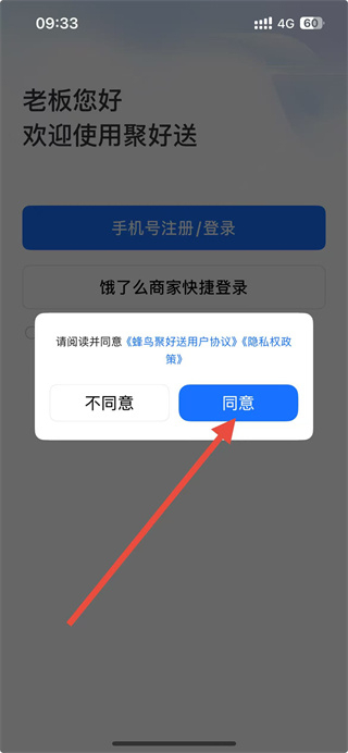 2、在弹出的协议确认弹窗中,点击同意选项。