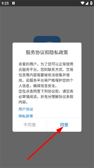 1、在服务协议和隐私政策弹窗中,点击同意,进入登录页面。
