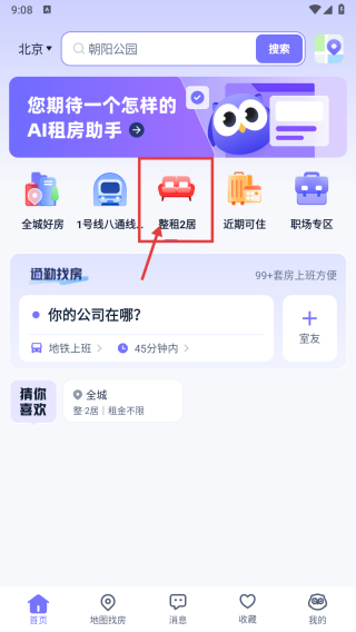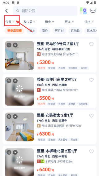 2、在整租2居中选择当前的位置信息。