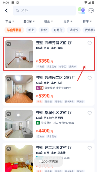 4、在房源信息当中查看整租2室2厅的房子情况。