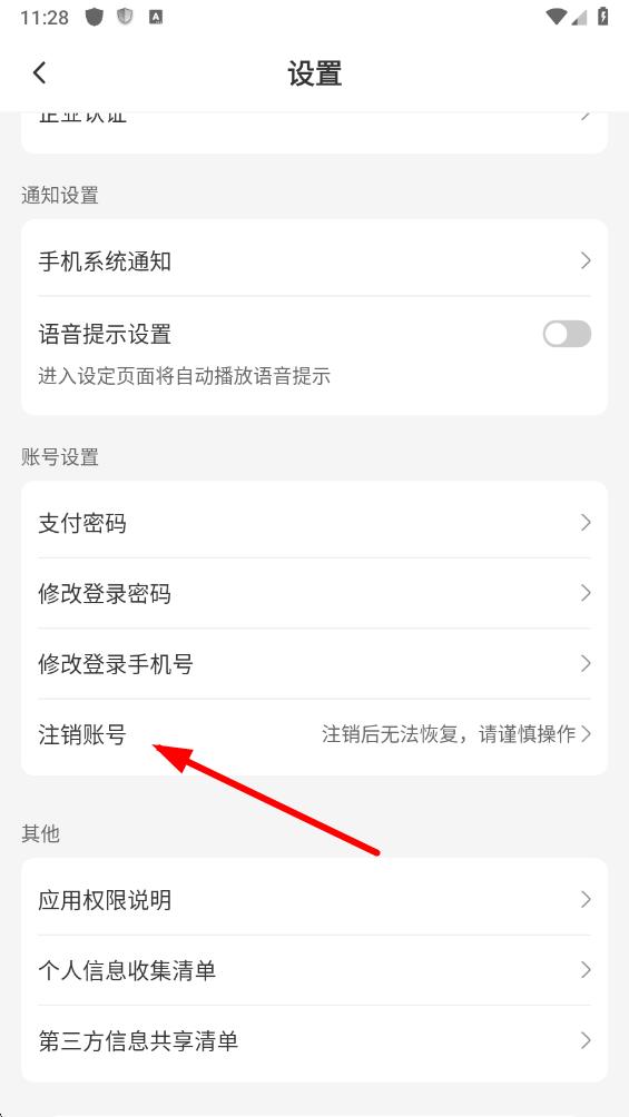 3、在设置页面的账号设置板块中,点击注销账号选项。
