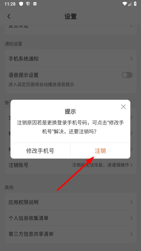 4、在弹出的提示框中,确认注销操作,点击注销完成账号注销。