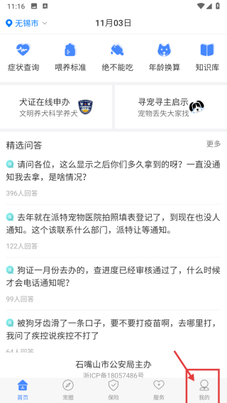 1、打开犬卫士APP首页,点击底部我的选项,进入个人中心页面。