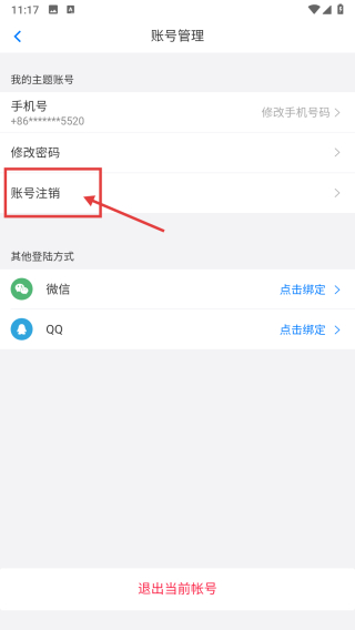 3、在账号管理页面,点击账号注销选项,进入注销须知页面。