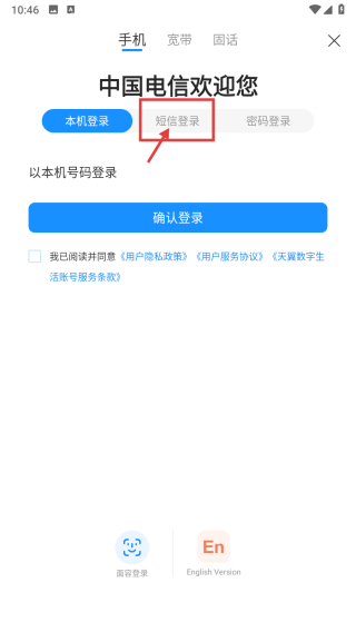 3、在登录方式选择页面,点击短信登录选项,进入短信登录信息填写页面。