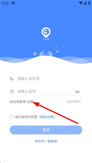 1、在登录页面,点击验证码登录/注册,进入登录/注册页面。