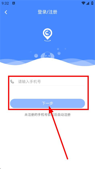 2、在登录/注册页面,然后输入手机号后,即可点击下一步。
