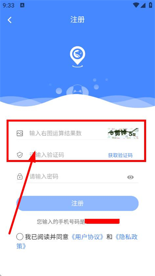 3、随后我们可以在注册页面,输入运算结果数、短信验证码。