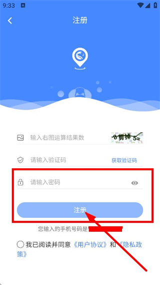 4、在注册页面,设置密码后,点击注册,完成账号注册操作。